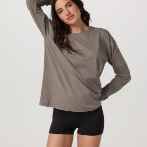 Long Sleeve Halo Ruched Tee | Pale Grey Crewneck Top | Vuori