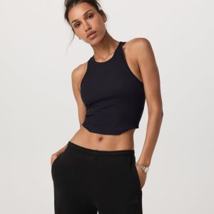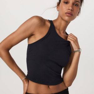 Pose Plyo Tank | Black Crop Tank Top with Built in Bra | Vuori
