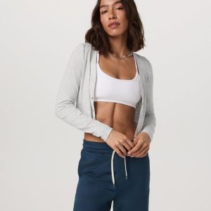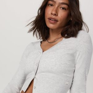Long Sleeve Pose Mini Cardigan | White Heather Grey Top | Vuori