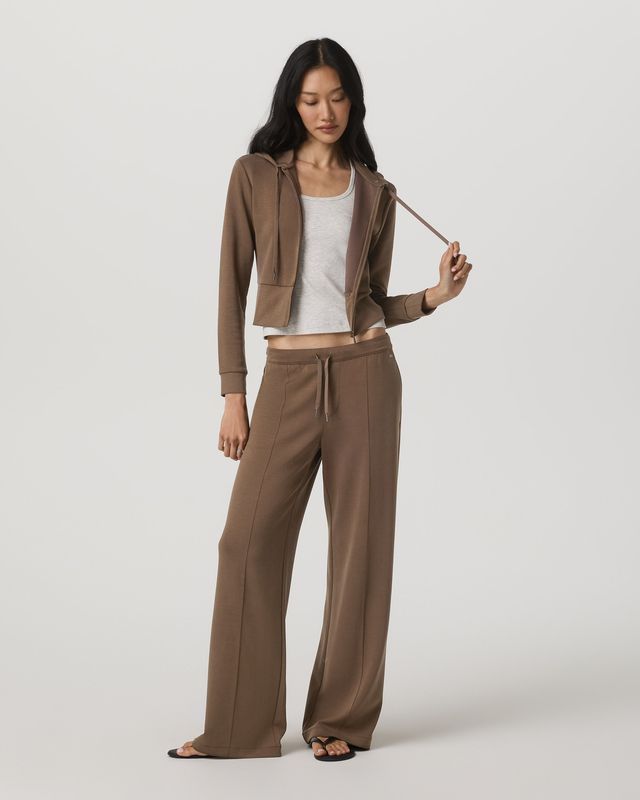 The Compose Full Zip Hoodie is a modern take on a zip-up with a wide ribbed waistband and matching cuffs. It’s crafted with a soft, lightly textured sandwash knit. We love wearing this women’s jacket with the Compose Wideleg Pant on rest days. Designed to mimic your favorite vintage hoodie, the fabric color naturally softens over time for a lived-in, well worn look.