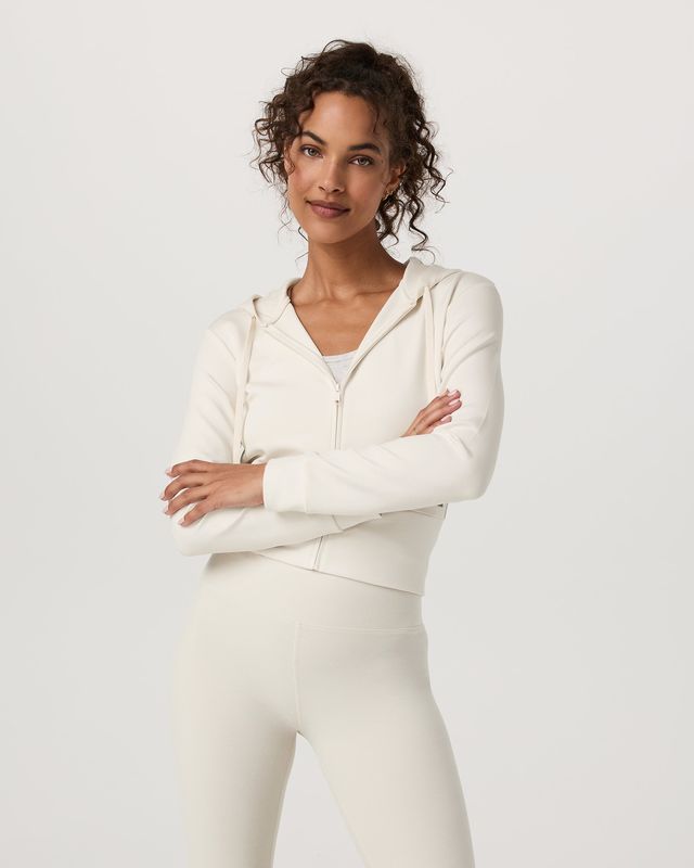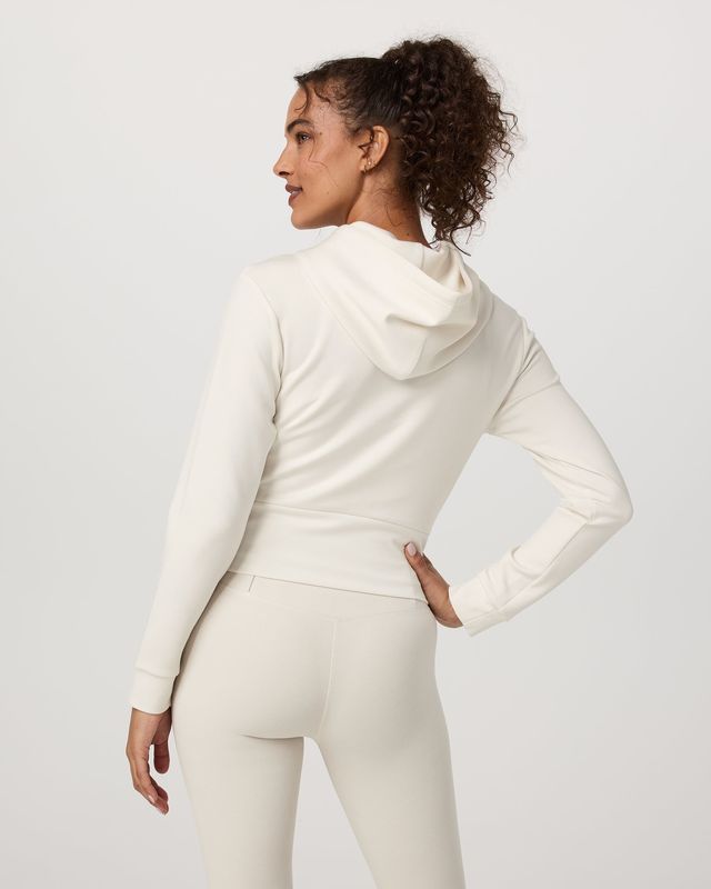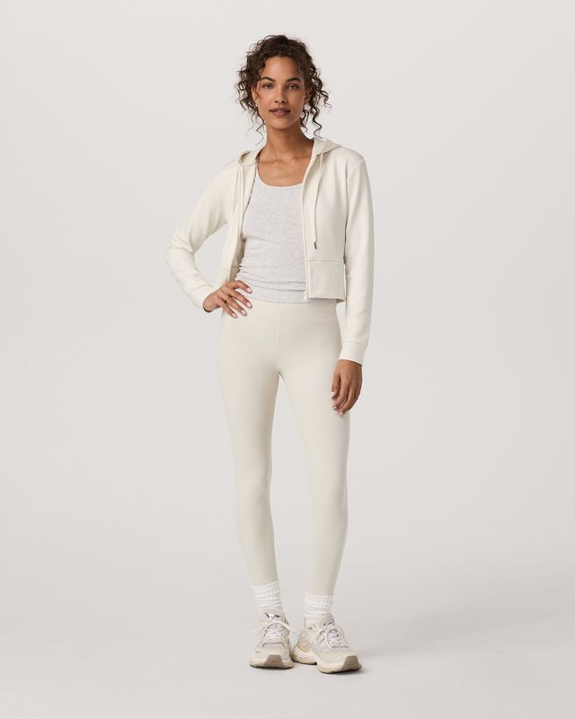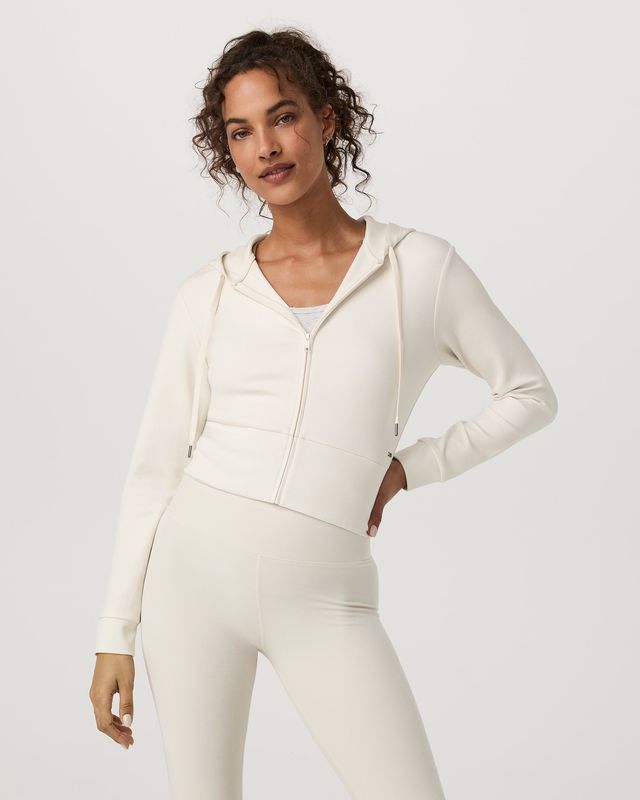 The Compose Full Zip Hoodie is a modern take on a zip-up with a wide ribbed waistband and matching cuffs. It’s crafted with a soft, lightly textured sandwash knit. We love wearing this women’s jacket with the Compose Wideleg Pant on rest days. Designed to mimic your favorite vintage hoodie, the fabric color naturally softens over time for a lived-in, well worn look.