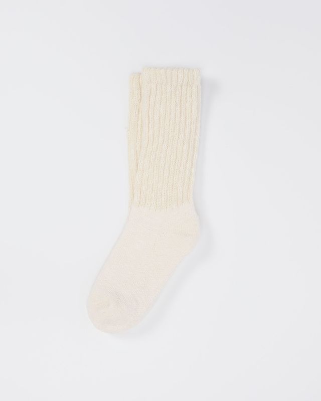 Cuddle up in the plush Cozy Sock crafted with soft yarns designed to be slouched around the ankle.