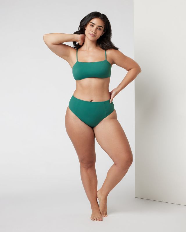 Sustainable, sporty and cheeky, this high waist bikini bottom is made from recycled, moisture-wicking performance stretch fabric built for comfort and movement. With a hidden phone pocket for quick pics and 30+ UPF sun protection, you have all-day sun support.Moisture WickingMade With Recycled ContentUPF 30+