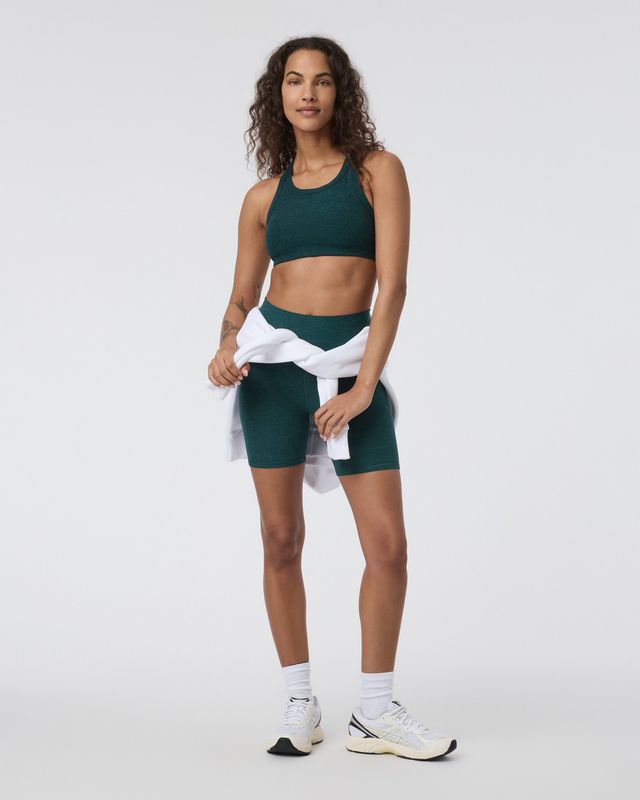Finally, the perfect pairing to your favorite Elevation bottoms. The Elevation Racer Bra features a scoop neckline, thick elasticized straps and built-in bra with removable cups for medium support. Made with our soft performance stretch knit from 87% recycled materials, this sports bra wicks away sweat and keeps you feeling fresh through every workout.
