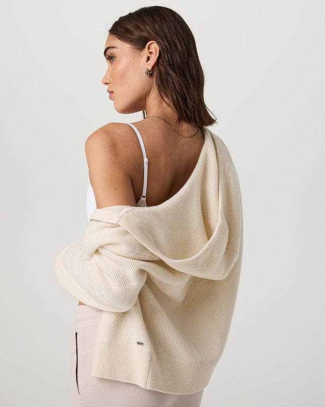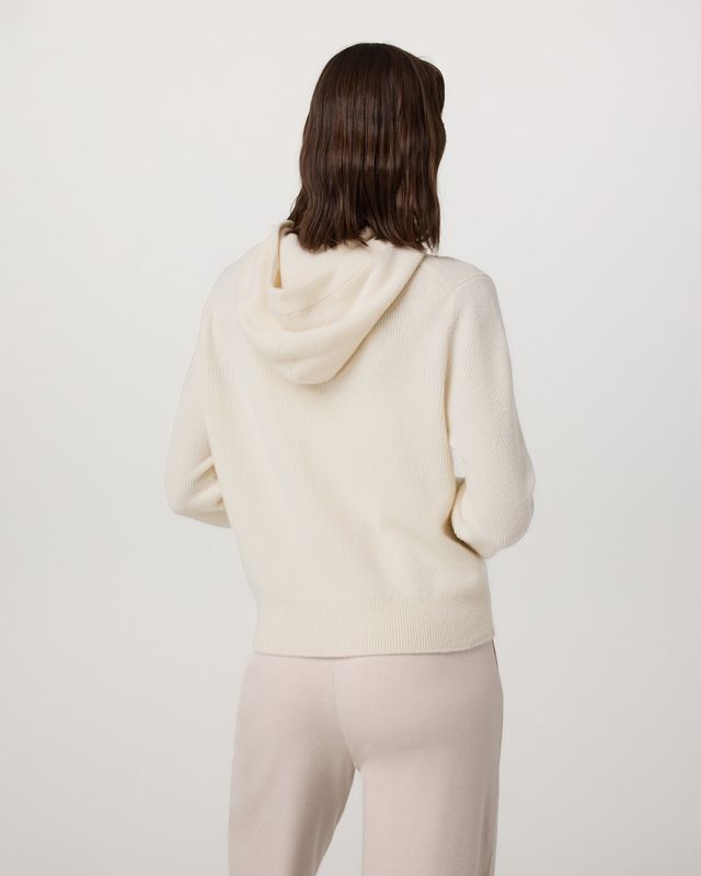 The Émilie Full Zip Cashmere Rib Hoodie brings luxury to a laid-back hooded style. Crafted from 100% cashmere with 60% recycled cashmere, this women’s sweater features a full front zipper and effortlessly relaxed fit.