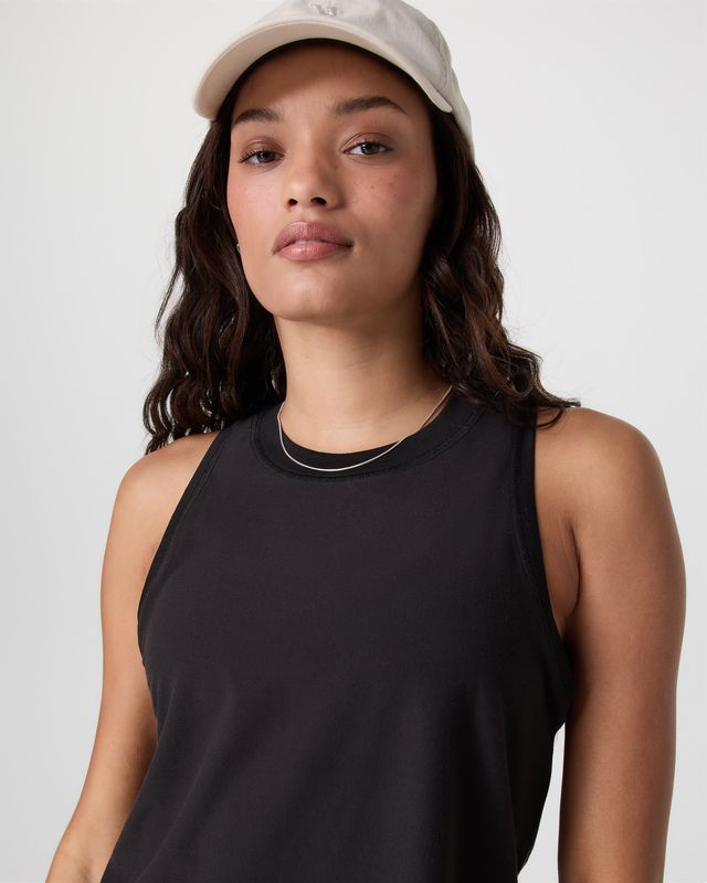 •Modern fit performance tank, skims at your high hip.