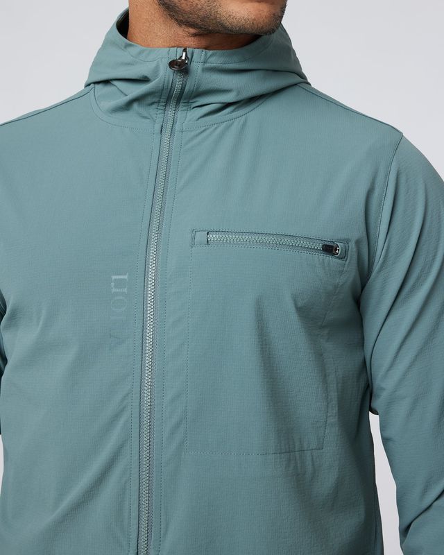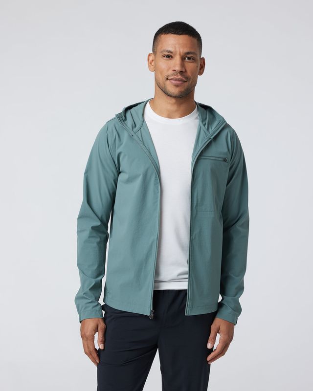 Windbreaker, style-maker. The Excursion Stretch Ripstop Jacket is built for the outdoors. Made with over 80% recycled material, plus a weather-resistant coating and full-zip front. The hood with cinched detail provides wind coverage. 4-Way StretchWater-ResistantMade With Recycled Material