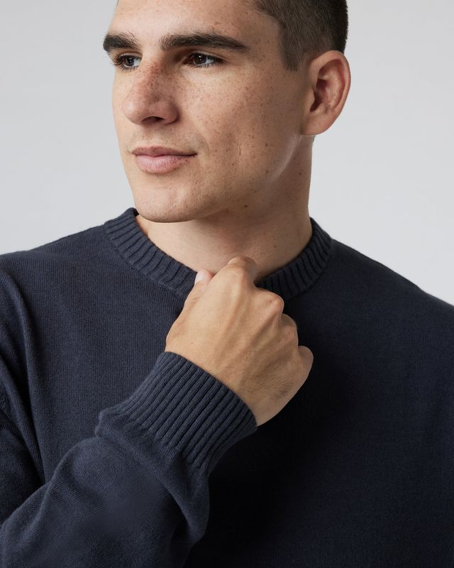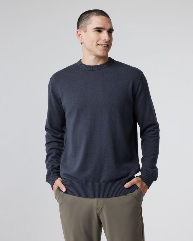 A touch of cotton cashmere makes all the difference in our cozy Fluent Sweater, with exposed seam details and a metal logo in back. Great for travel and everyday wear.