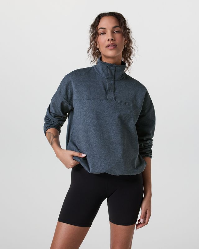 The Granite Snap Mock is a new pullover you’ll find yourself wearing everywhere. It’s built with our brushed-back Granite fabric that’s equally soft, stretchy and toasty warm, making it perfect for cooler days. Finished with a classic kangaroo pocket and hidden snap collar.