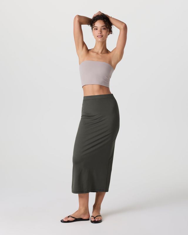 The Halo Column Skirt defines effortlessness. It’s crafted in our famous DreamKnit™ fabric made from 89% recycled materials that’s ultra soft yet supportive. With a midi length, high rise and center back hem slit, you can seamlessly go from the office to evening outings in style.
