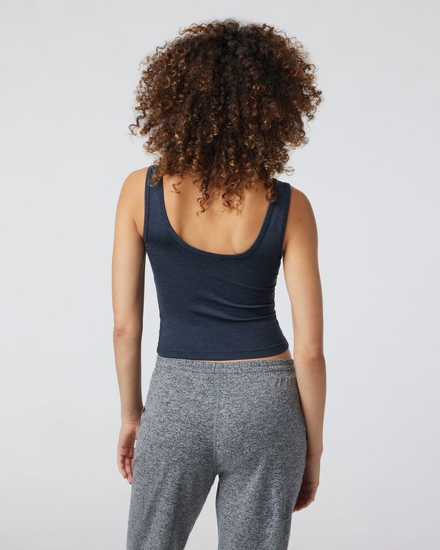 It’s called DreamKnit™ for a reason. Our innovative softest premium stretch fabric is derived from mostly recycled material and makes this timeless tank moisture-wicking and movement-ready.
