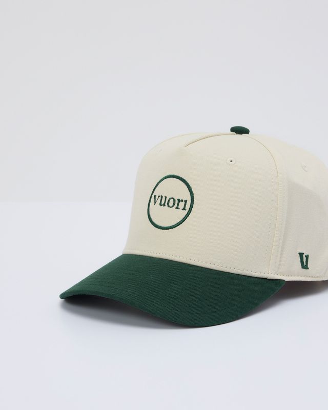 The Hermosa Two Tone Hat delivers vintage vibes with contrasting colors and an embroidered front logo.