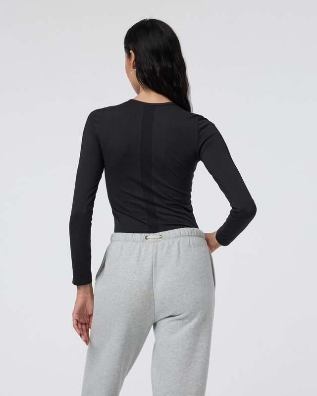 The Apres Seamless Top is a fitted long sleeve designed to go from cross-country skiing to relaxing by the fire. It’s made from technical wool and detailed with raised ribbing on the front and down the sleeves for a flattering finish.