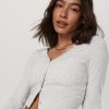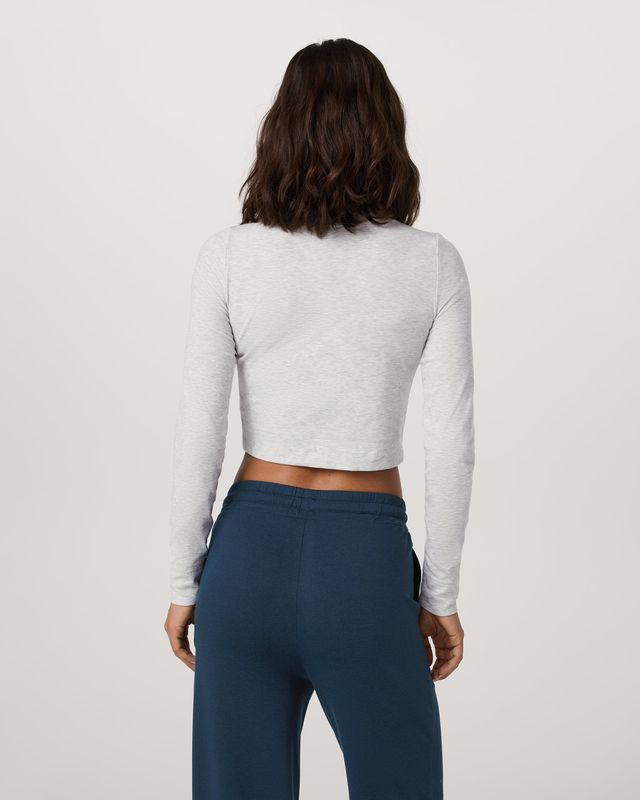 Made with our soft stretch rib knit, the Long Sleeve Pose Mini Cardigan offers lightweight comfort and easy styling. This semi-fitted women’s cardigan features a deeper plunge neckline with a front button closure, and a slightly cropped length.