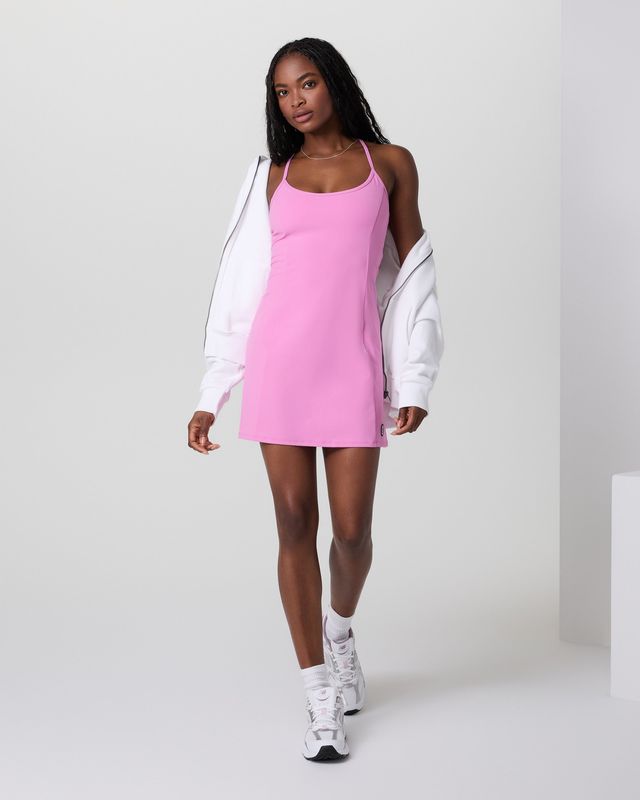A do-it-all dress with an interior bike-short length bodysuit for added coverage and support. From the court to the green and everything in between, the One Shot Tennis Dress is moisture-wicking, fully lined and made to move with you.