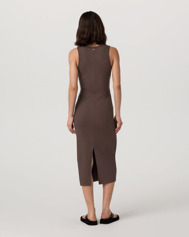 The women’s Pose Scoop Dress is the ultimate in one-and-done styling, combining effortless comfort with an elegant, scoop neckline. Made with a stretch-to-fit ribbed knit, we’ve added refined details like a fitted bodice, side ruching, and a back slit.