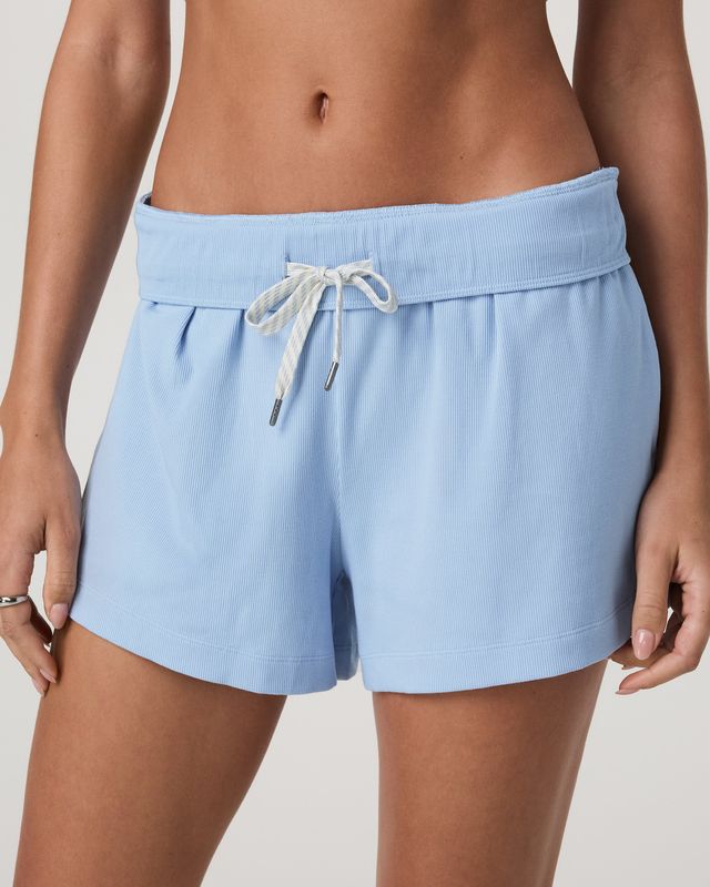 We love the fit and feel of our stretch rib knit, especially in this new lifestyle bottom. The Pose Short features a relaxed fit, side seam pockets, and a chic ruched elastic waistband with elegant front pleats. Pairs perfectly with our Pose Cami.