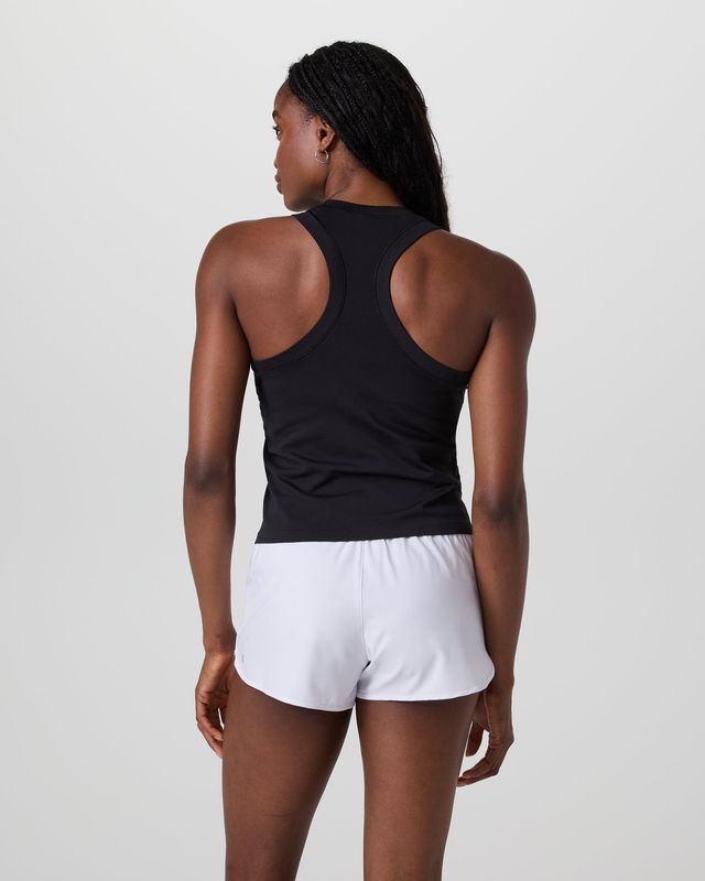 A performance tank with unlimited wearability, this top has a sleek, seamless construction and zero side stitching to reduce chafing for maximum comfort. It has wide rib binding, a higher neckline tailored for sports bras, and mesh side panels for enhanced airflow.