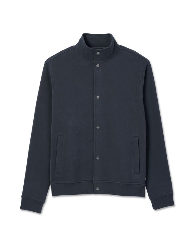 The Seaside Jacket brings our brushed-back fleece into a new, polished form made with 66% organic cotton. With a mock neck, snap front and clean fit, you can wear this from office to outdoors, long days to late nights out. Hello, versatility.