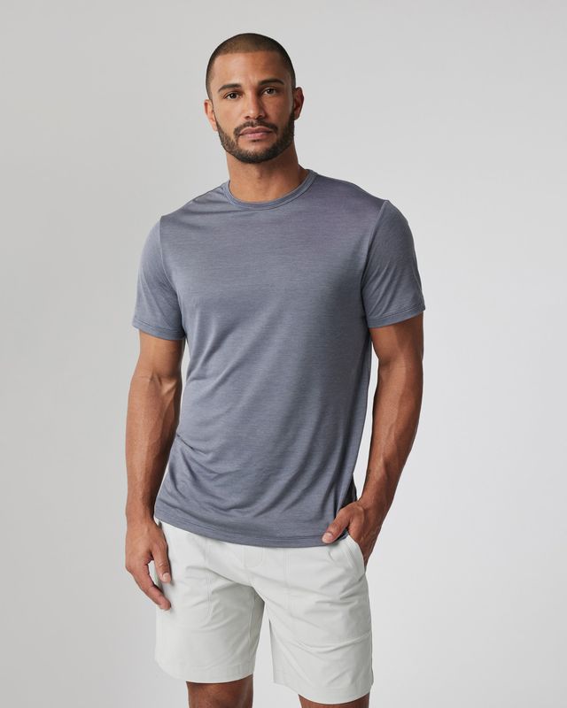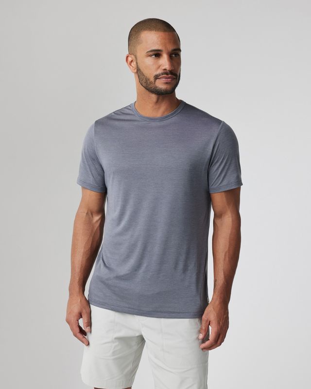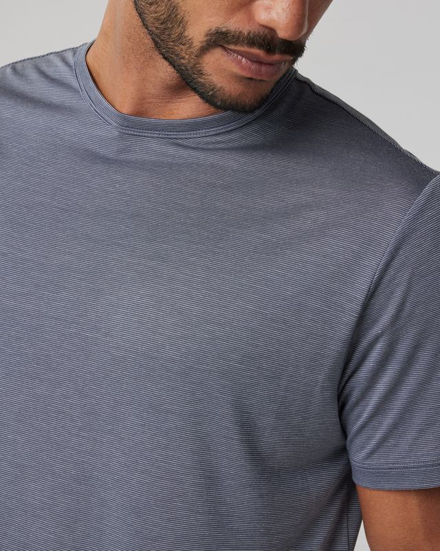 Ultra-light and breathable performance first-layer to everyday staple, the Marina Stripe Tee features a micro stripe pattern in a moisture-wicking technical fabric, making it a versatile staple.