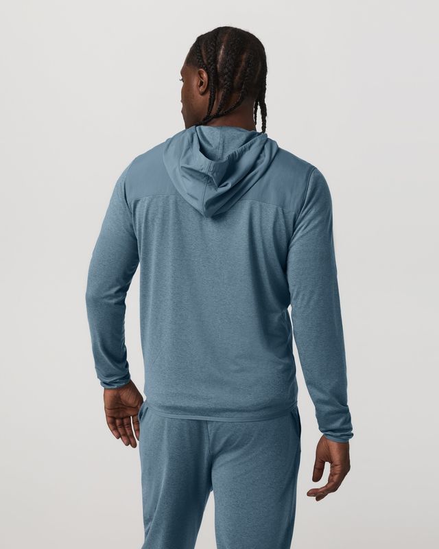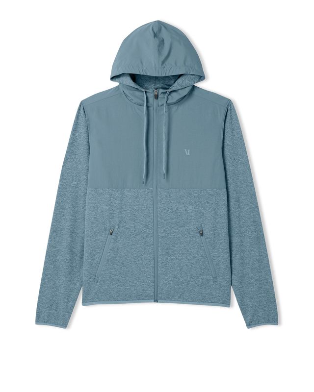 This jacket checks the boxes for both soft performance stretch knit plus a protective nylon shell from 88% recycled material to help protect from the elements. Moisture-wicking fabric along with nylon overlays, a drawcord hoodie, and zip pockets keep you in check. Great for training and running.