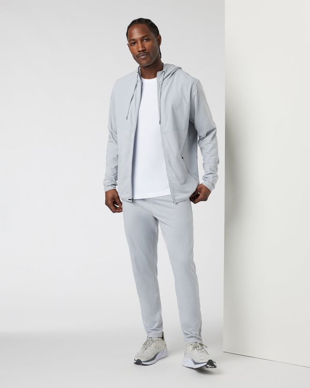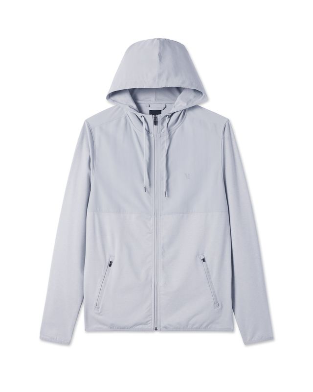 This jacket checks the boxes for both soft performance stretch knit plus a protective nylon shell from 88% recycled material to help protect from the elements. Moisture-wicking fabric along with nylon overlays, a drawcord hoodie, and zip pockets keep you in check. Great for training and running.