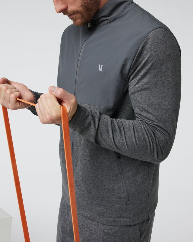 An easy-to-style track jacket built with a mostly recycled stretch knit and woven overlay. Wear it to practice, pair it with jeans or match it with your essential Vuori bottoms.