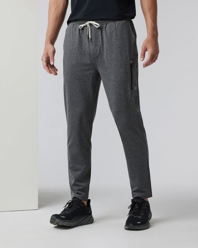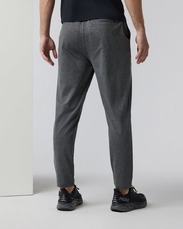 The loved Sunday fabric now in a tailored track pant silhouette. We revamped the style to have the loved thigh zip pocket while removing the zips at the bottom hem. We did this to give the customer a new silhouette in the Sunday family without the constraint of the gusset at the bottom hem zip.