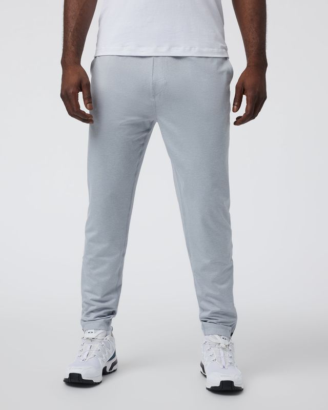 Track pant style in a super soft stretch knit. Built to sprint or to sprawl out, these moisture-wicking bottoms are finished with front and back pockets and zippered hemlines.
