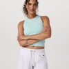 A performance tank with unlimited wearability, this top has a sleek, seamless construction and zero side stitching to reduce chafing for maximum comfort. It has wide rib binding, a higher neckline tailored for sports bras, and mesh side panels for enhanced airflow.