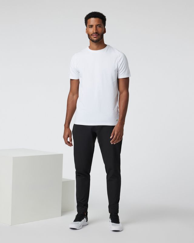 Our most technical jogger with the comfort and wearability of everyday pants. Abrasion resistant, technical 4-way stretch woven fabric for structure and durability, with back and side zip pockets, a signature drawcord and elastic ankle cuffs to tie everything together.