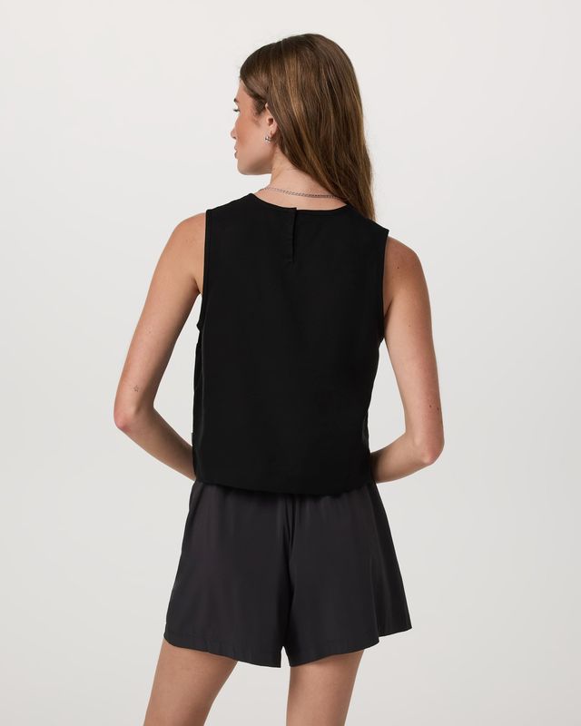 Crafted with a breathable linen blend, the Trestles Twill Crop Tank pairs sophisticated style with warm weather comfort. This women’s tank top features a slightly cropped hemline, elegant darting, and a relaxed fit.