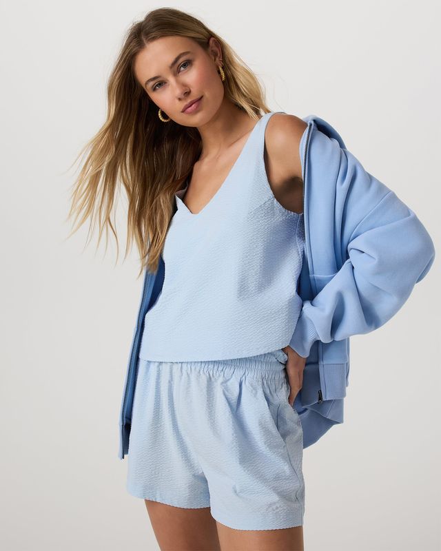 With gorgeous drape and natural wrinkle resistance, the Villa Textured Crop Tank is an instant Vuori favorite. It’s designed with a flowy fit, full lining, and bra-friendly silhouette. Wear with the Villa Textured Short for head-to-toe comfort and elegance.