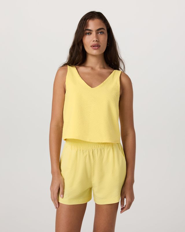 With gorgeous drape and natural wrinkle resistance, the Villa Textured Crop Tank is an instant Vuori favorite. It’s designed with a flowy fit, full lining, and bra-friendly silhouette. Wear with the Villa Textured Short for head-to-toe comfort and elegance.