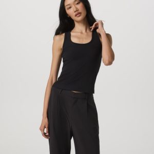 Pose Plyo Tank | Black Crop Tank Top with Built in Bra | Vuori