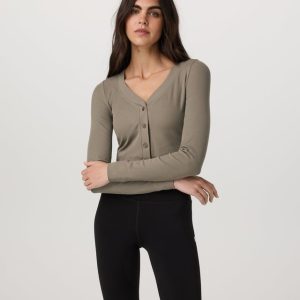 Long Sleeve Pose Mini Cardigan | White Heather Grey Top | Vuori