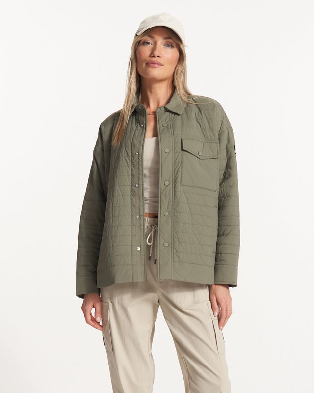 Effortlessly relaxed. Unbelievably cozy. Part of our perfectly-puffed Canyon collection, this stretch-infused shirt jacket is a match for any mood or mountaintop. PFC-free coating provides the water resistance, with Primaloft™ insulation for warmth.