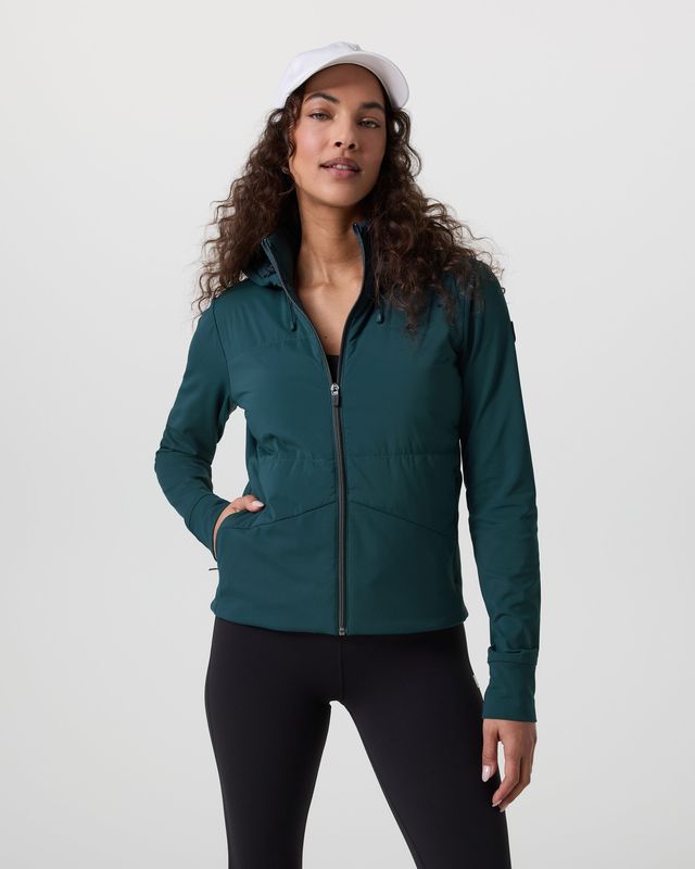 Be in your element, in the elements. From cold-weather runs to cross-country skis, this lightly insulated jacket is made with our performance stretch woven fabric with knit panels on the sides and sleeves to help you move with ease. Features Primaloft™ eco-insulation and PFC-free, durable water-repellent coating.