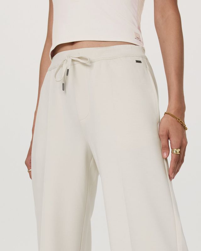 Elevated in comfort and style, the Compose Wideleg Pant is a relaxed bottom made with our sandwash, spacer knit interlock fabric. These soft-on-the-skin pants feature elegant pintuck details, a comfortable elastic waistband, and a mid-high rise that you can dress up or down. Designed to mimic your favorite vintage pant, the fabric color naturally softens over time for a lived-in, well worn look.