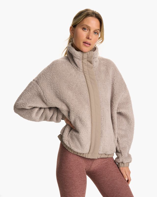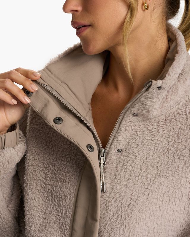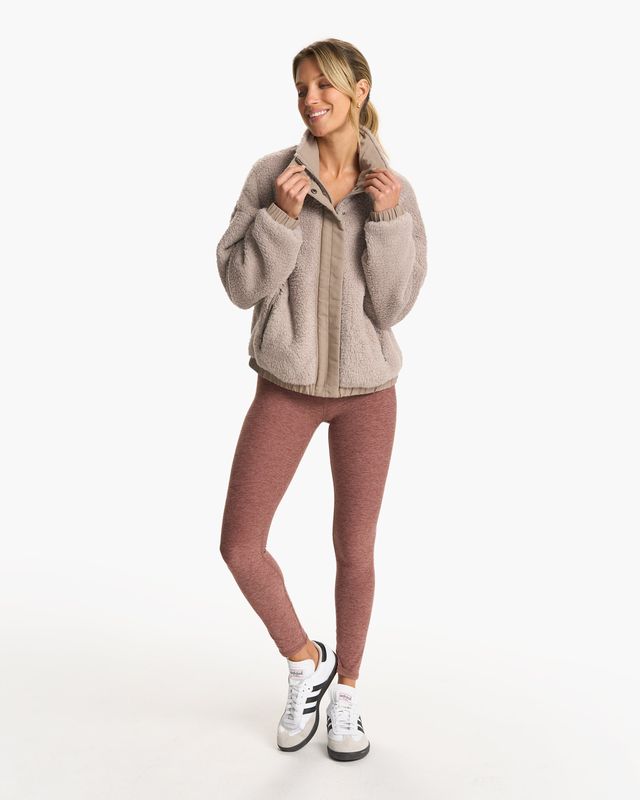 Cozy—always. This ultra-plush jacket features high-loft sherpa that holds heat and adds softness. Made from over 70% recycled materials, it has a full-zip with a hidden snap placket and two zippered hand pockets, perfect for cool mornings and mountain trails.