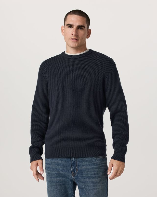 From wintry walks to holiday gatherings, the Denver Waffle Crew Sweater keeps you warm in a heavyweight wool blend made with 55% Merino wool. This premium men’s sweater features an ultra-soft waffle knit and a classic fit for versatile, elevated layering.