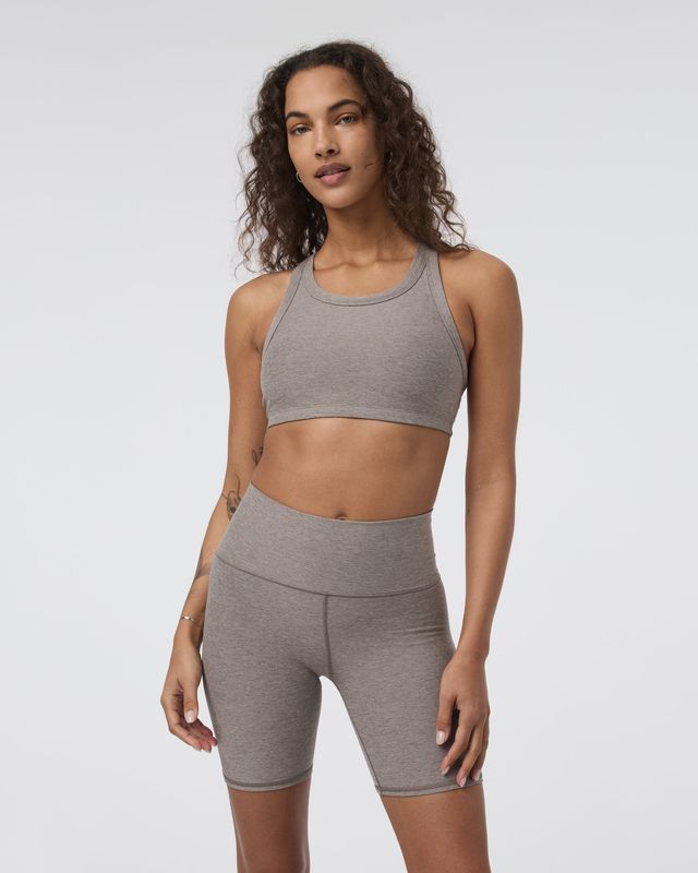 Finally, the perfect pairing to your favorite Elevation bottoms. The Elevation Racer Bra features a scoop neckline, thick elasticized straps and built-in bra with removable cups for medium support. Made with our soft performance stretch knit from 87% recycled materials, this sports bra wicks away sweat and keeps you feeling fresh through every workout.