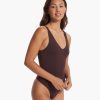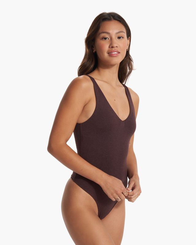Halo Bodysuit | Mahogany Plunge Neckline Bodysuit | Vuori