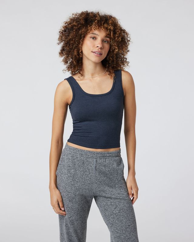 It’s called DreamKnit™ for a reason. Our innovative softest premium stretch fabric is derived from mostly recycled material and makes this timeless tank moisture-wicking and movement-ready.