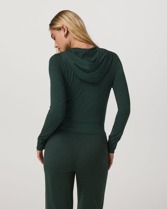The Halo Mini Full Zip puts a modern spin on classic comfort. Made with 89% recycled DreamKnit™ fabric, this fitted, cropped hoodie offers a sleek silhouette that pairs effortlessly with your favorite Vuori styles. Designed with 4-way stretch for ease and versatility, it’s the perfect layer for a stylish, on-the-go lifestyle.