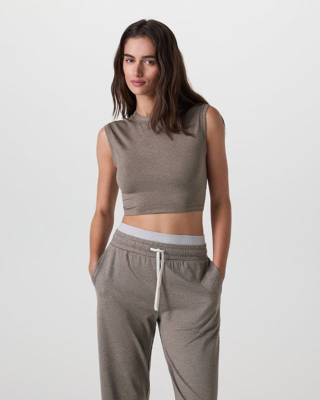 A bold update to the classic muscle shirt—meet The Halo Reina Crop Tank. Featuring our smooth DreamKnit™ from 89% recycled materials, this layer-ready tank has a high crewneck, cropped length, and body-hugging fit.