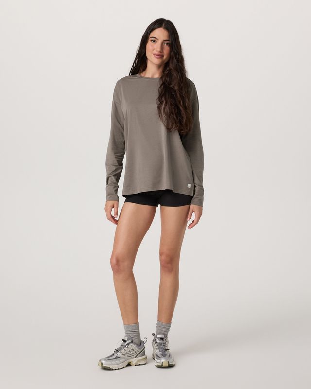 An impossibly lightweight tee, made possible. Weightless as a feather with surprisingly great coverage, this relaxed long sleeve shirt perfects that not-wearing-anything feeling. Made with performance stretch cotton.