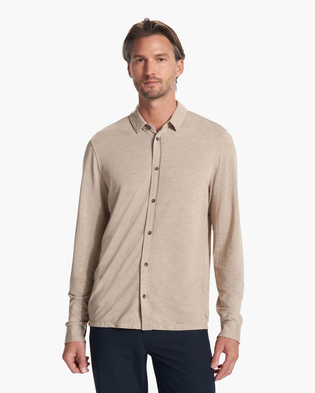When function meets form. This button-down long sleeve shirt is built with over 50% recycled performance knit twill that’s moisture wicking and made with stretch.