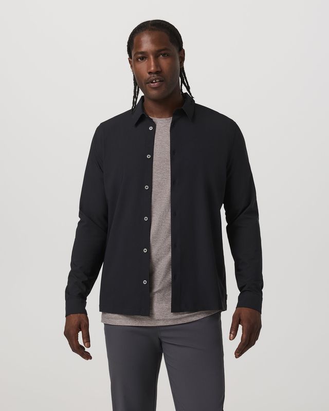 Everyday polish in a 100% recycled performance woven. This premium button-down shirt looks sharp and serves function with moisture wicking technology.