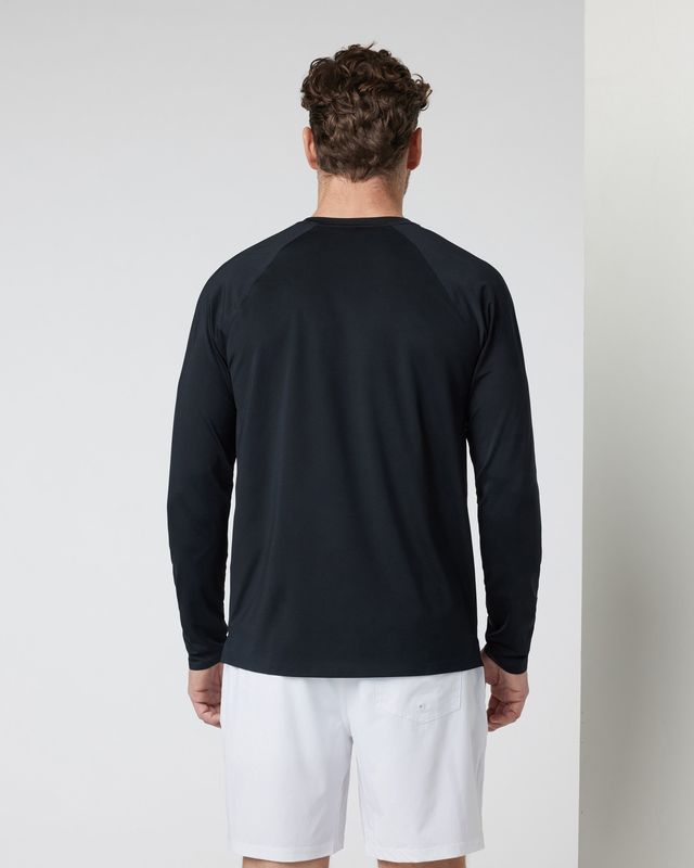 A lightweight long sleeve ideal for conquering elevation and extended training days. This raglan sleeved T-shirt is made with our mostly recycled stretch woven fabric and geared for performance with bonded seams and moisture-wicking tech.